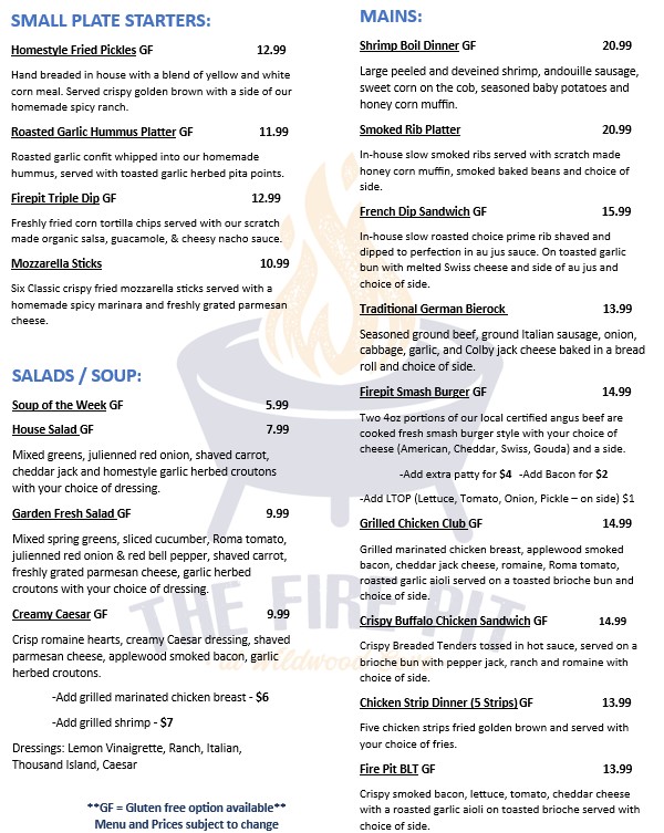At The Fire Pit At Wildwood Cove Menu, you’ll find the kind of food that makes you slow down and enjoy the moment. Tucked away at 6820 County Rd 373 in Eucha, this spot feels like the kind of place you stumble upon once and keep coming back to. The menu leans into hearty, crowd-pleasing dishes - the kind that pair perfectly with a laid-back lakeside vibe - and each plate seems designed to make you feel right at home.